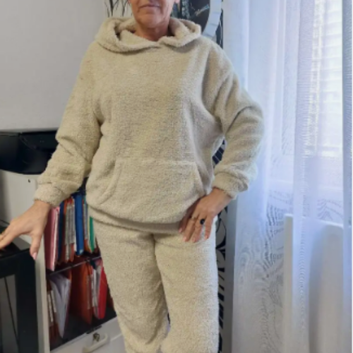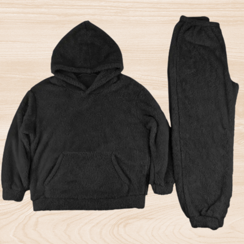 Les ensembles sont fabriqués dans une matière synthétique pelucheuse à base de polyester, choisie pour sa douceur incomparable et sa capacité à garder la chaleur sans peser.